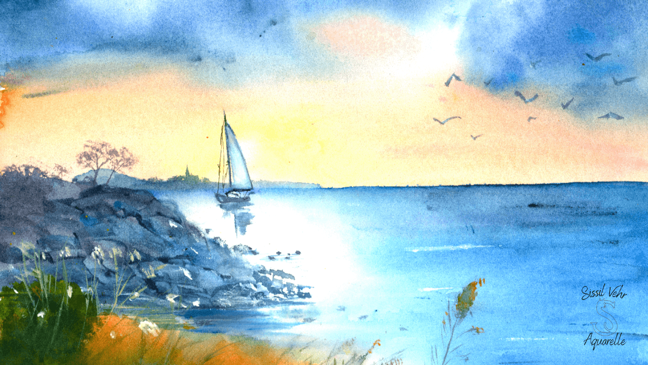 Travaillez les reflets, la profondeur et les lavis dans l’humide pour peindre la mer et les horizons lumineux.