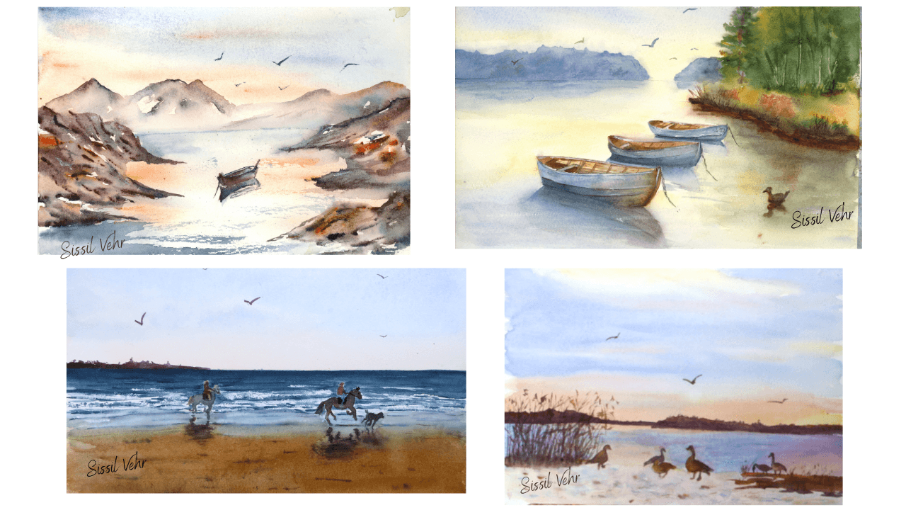 Un parcours en 4 cours pour peindre des paysages au bord de l’eau, entre brumes légères, reflets doux et scènes paisibles, pas à pas, à votre rythme.