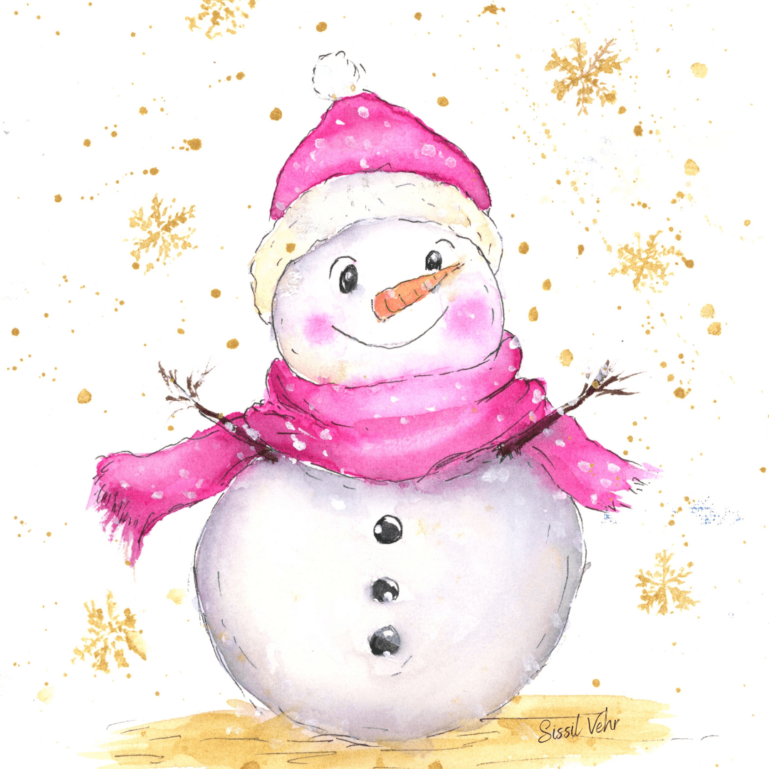 Peignez ce bonhomme de neige de Noël : un pas à pas doux pour travailler les lavis et les volumes. Accessible aux débutants.