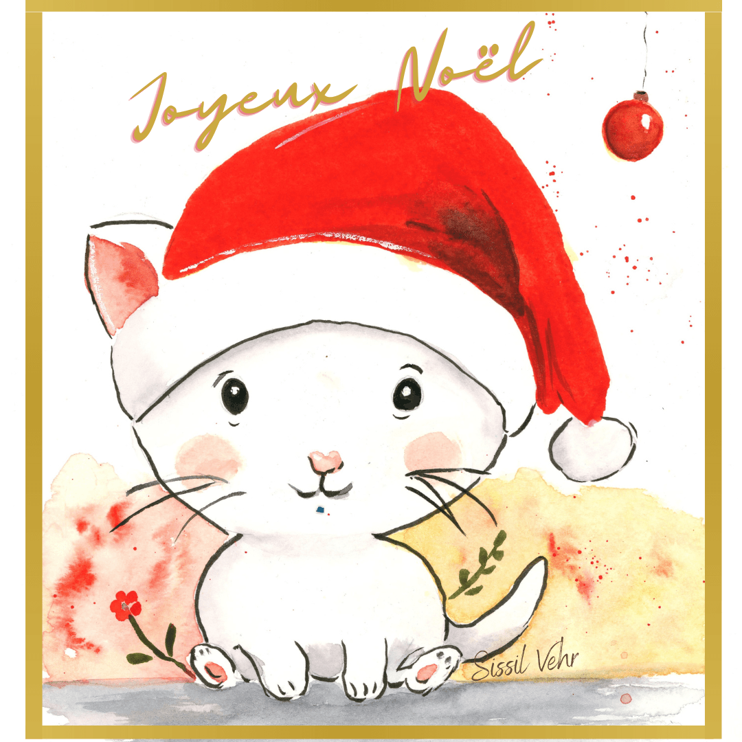 Peignez ce chaton de Noël à l’aquarelle : pelage doux, regard lumineux et neige légère pour une carte chaleureuse, pas à pas.