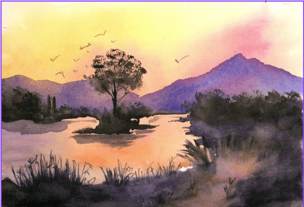 Peindre un paysage doux et lumineux inspiré du ciel de fin de journée. Idéal pour débuter l'aquarelle sans stress et pratiquer les fondus et les reflets.