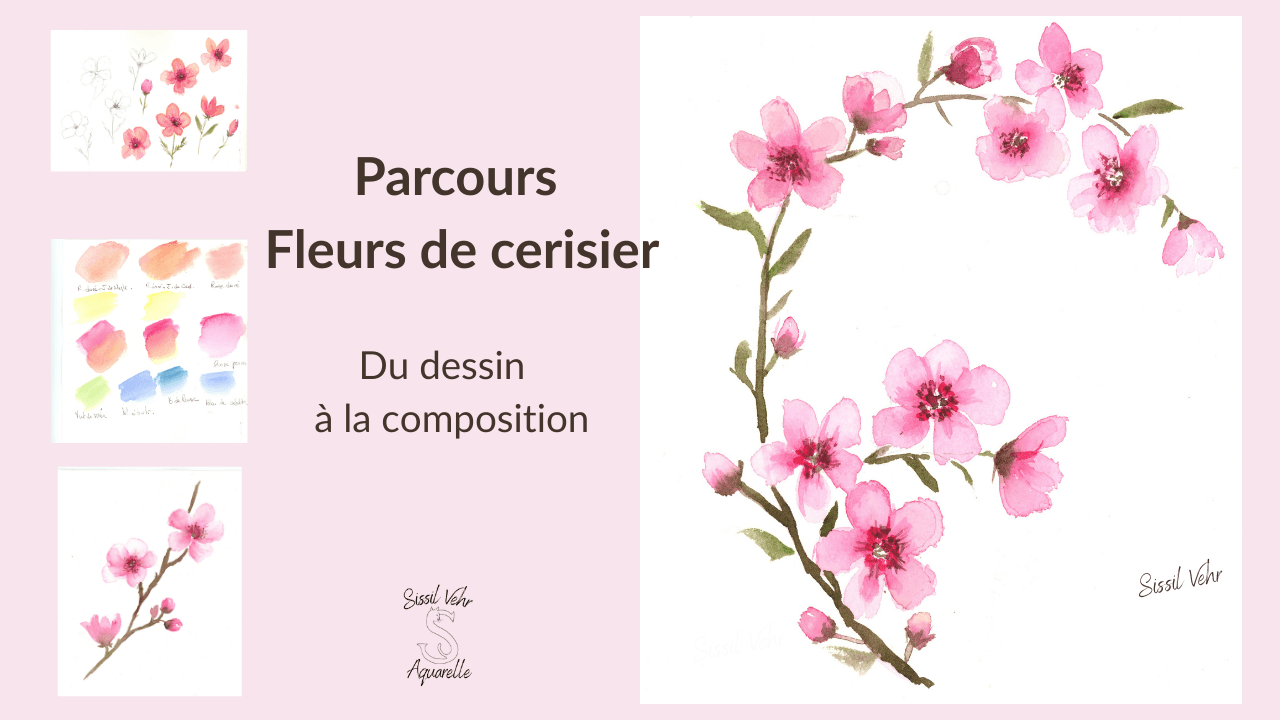 5 modules pour peindre des fleurs de cerisier à l’aquarelle.